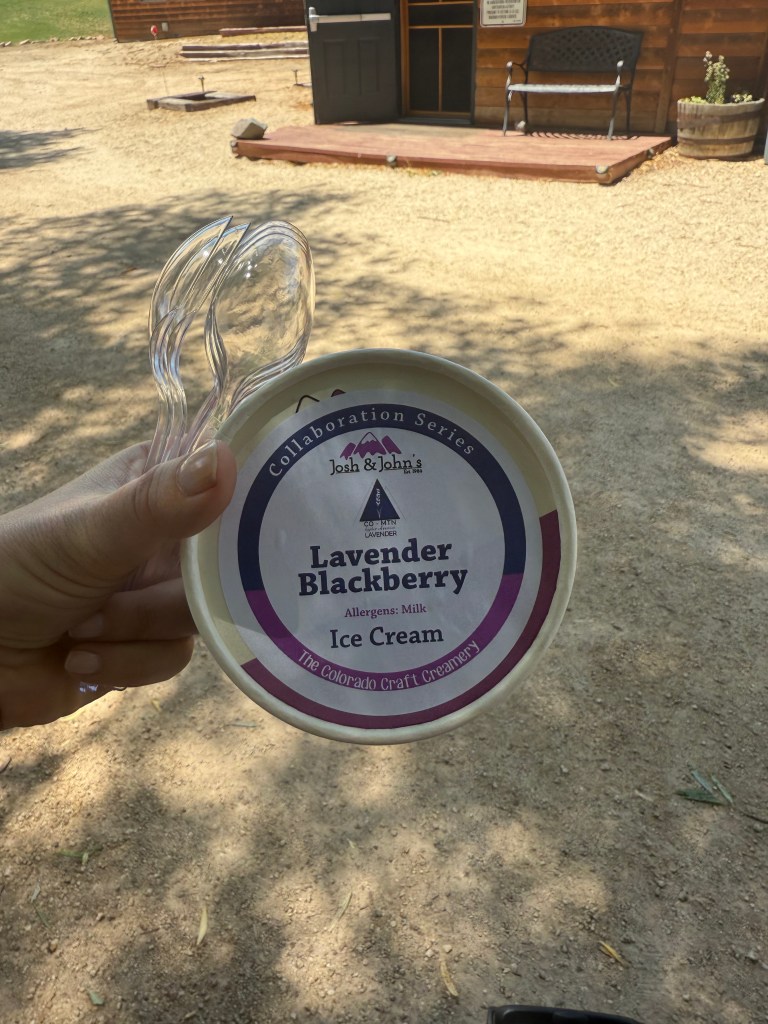On July 12th, we took most of Frank’s family and the dogs to the Cotopaxi Lavender Farm. We treasured a car ride with a stop at a gas station with a dog park, and a quick pit stop at the Royal Gorge. When we arrived at the Lavender Farm, we enjoyed browsing the store and picking up some favorite items as well as some new ones. For example, we bought some balsamic vinegar infused with lavender and I used it to roast some peaches and put over a sourdough dutch baby (a huge pancake baked in a cast iron pan). The day was sunny yet delightful, and we enjoyed a beautiful picnic lunch followed by a stroll through the lavender field. Tahlia thought she was in heaven, rolling in the grass, and we enjoyed the sensory delight of lavender wafting through the air, clear bright skies, and the tiny whir of butterflies and bees happily frolicking around the flowers.