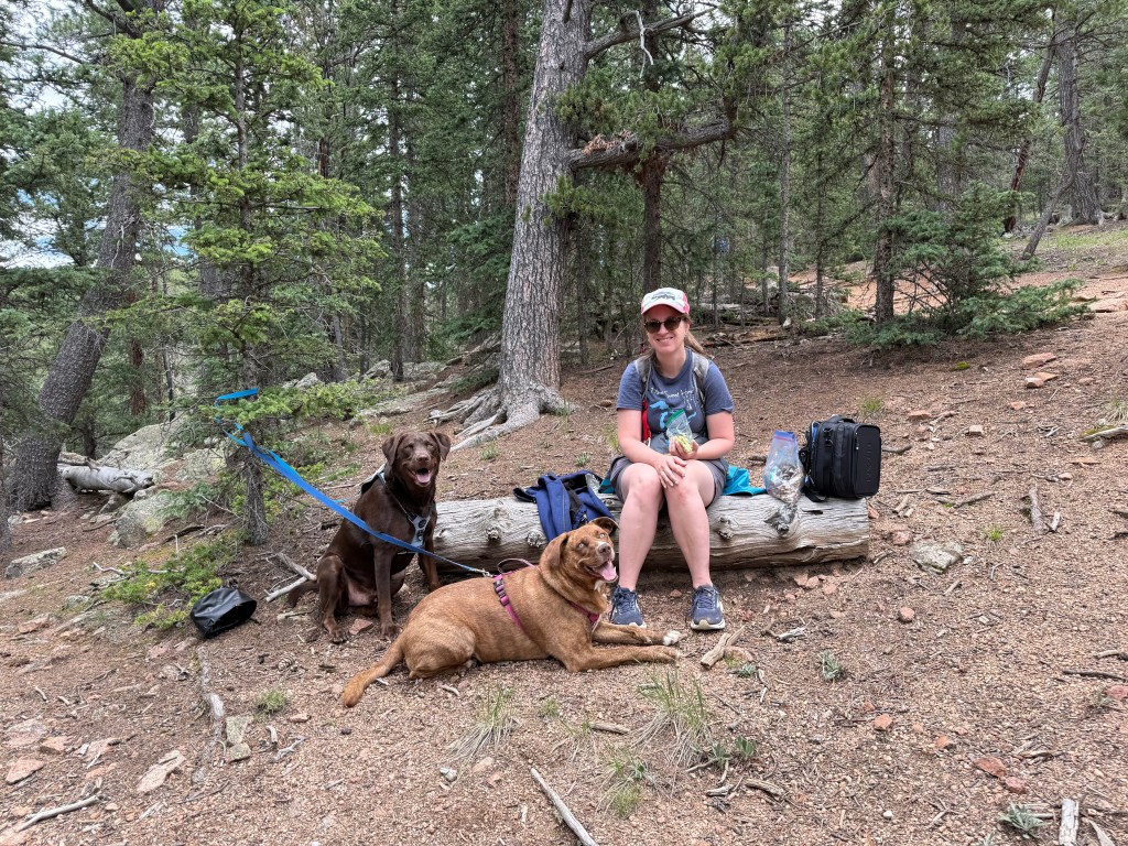 The next weekend, Frank and I took the dogs to the Craig Trail. We walked a beautiful trail with a small creek running alongside the trail, meadows with wisps of red, purple, white, and yellow flowers, and finally traversed a path to the overlook at the top. It was breathtaking. We climbed back down, and I fell close to the trailhead. We also got a parking violation for parking on the side of the road (with many other vehicles). In the end, we enjoyed a bbq dinner and a restful evening.
