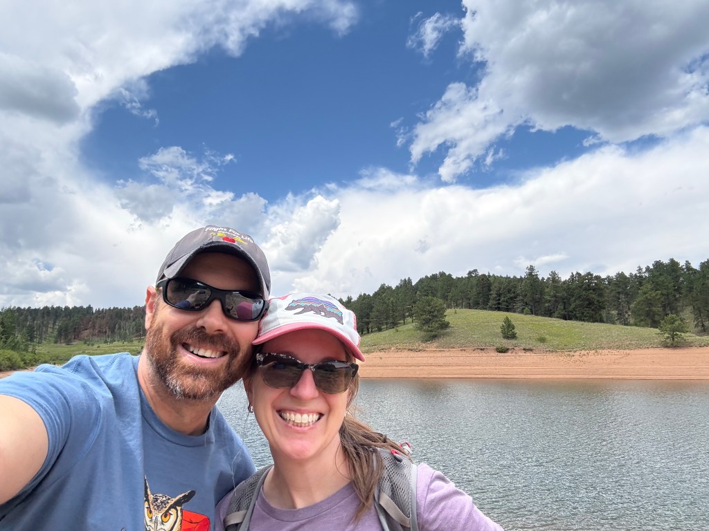 At the beginning of the month, we went to the Rampart Reservoir via the Rainbow Gulch trail. We loved our walk with the puppies out to the reservoir. The sound of water crashing on the rocks as we walked along the path and the bursts of wildflowers and meadow grasses beckoning us to drink in the rugged beauty of the Colorado forest with lush pine trees and multiple pathways to get to our destination. It felt like a choose your own adventure story, and it was. We bought dinner at the grocery store afterwards, and enjoyed a sandwich picnic in the back of our suburban. Tahlia got her precious cucumber treat, and Takoda wolfed his cucumber down.