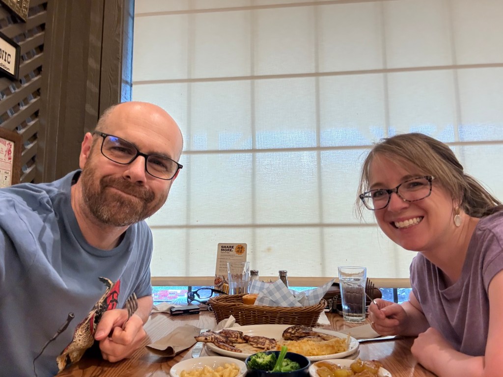 Frank worked quite a bit of time, and also finished his second Nurse Practitioner course. He didn’t have a lot of time off, so one night we slipped away to Cracker Barrel, for a quick “date.” He tried to convince the waitress (who is training to be a professional singer) that he was also attempting to be a professional singer, but she caught on to his antics, and they both had a good laugh. We also enjoyed a few dates to La Baguette and Loyal Coffee. I am convinced Loyal Coffee is my new Lavender Latte spot.