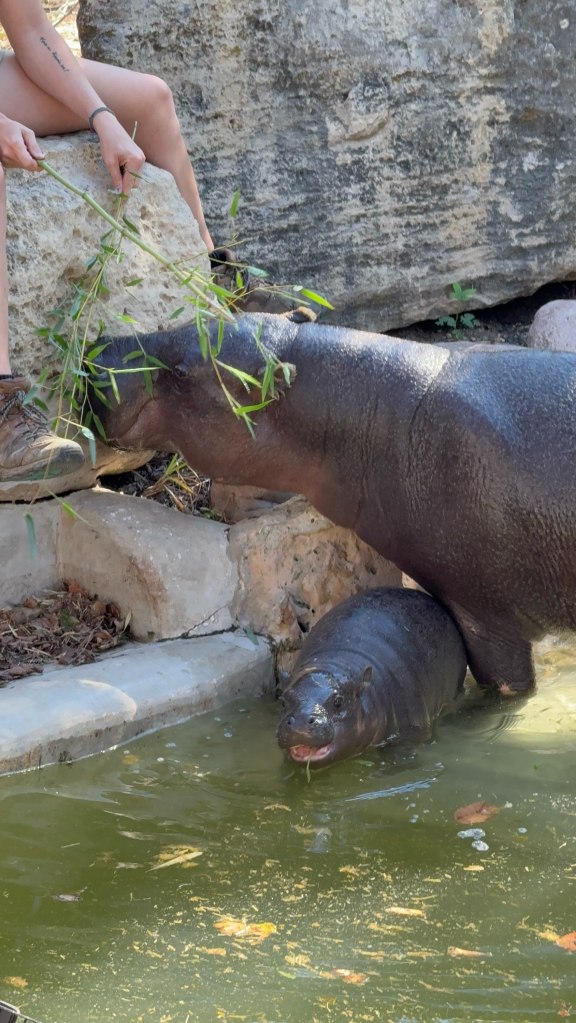 One of my favorite memories was going to meet Mars, the baby Pygmy hippo with our dear “adopted mom”, Marta. On October 16, we woke up very early. We picked up Marta and began our road trip out to Wichita, Kansas. We enjoyed fellowship and joyful times, sharing what God had laid on our hearts. We arrived at Tanganyika Wildlife Park and were elated to meet Pluto, Mars’ Dad. We fed Pluto carrots and sweet potatoes, petted him (he felt like sandpaper), and each of us received an orange nose boop painting on a canvas. When Mars came out, we were excited to see him with his Mom. He was smaller than I thought, and such a sweet little dude. We enjoyed watching him swim and walk around. We also got to feed lemurs, met Monica the rhinoceros. We enjoyed dinner at Cracker Barrel, with one of Marta’s longtime friends. Marta surprised me with my own plush pink hippo, and I named her Posie, in honor of Mars mom. We crashed in the hotel room, then drove home the next day. The highlight was spending time in fellowship.
